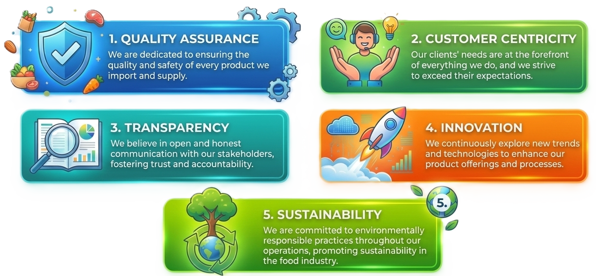 Our mission at Goldfayre Trading Ltd. is to provide superior quality food products sourced from around the globe, meeting the diverse needs of our clients while upholding the highest standards of integrity, reliability, and customer satisfaction.